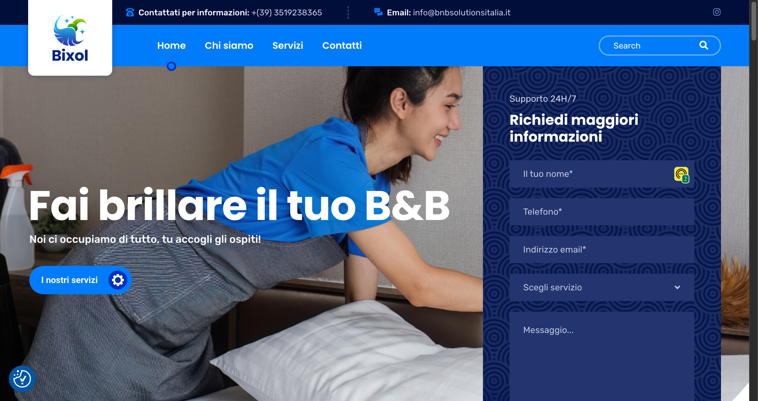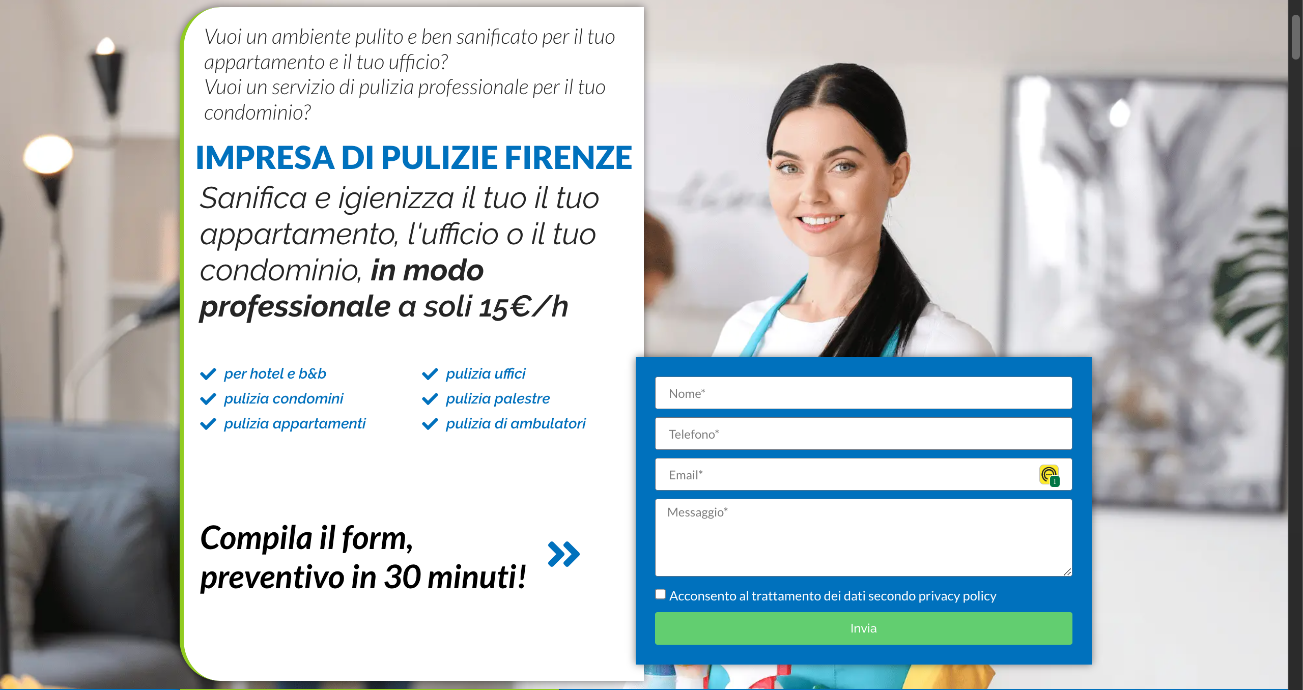 Ideale per vuole realizzare un sito web che gli generi richieste di preventivo. Sarà strutturato in modo che ogni pagina sarà destinata ad un servizio da vendere, dove riceverà traffico da campagne pubblicitarie.